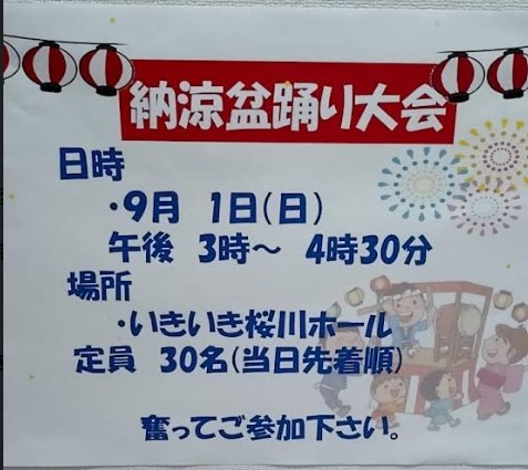 9/1(日)納涼盆踊り大会@桜川敬老館 2024年9月2日 最終更新日時 : 2024年9月2日 Minoさん 10分間の休憩をはさみ、ノンストップで1時間30分踊り続けました。 皆さんとってもお元気です! Bluesky
