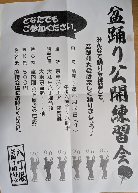 11/16(日)盆踊り公開練習会@京華スクエア体育館